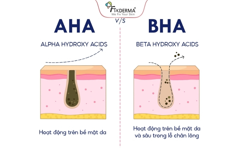 AHA và BHA là chất tẩy tế bào chết hóa học phổ biến trong ngành chăm sóc da. Về cơ chế, AHA tan trong nước và BHA tan trong dầu. Điểm chung của cả hai hoạt chất này là loại bỏ tế bào sừng già, phá vỡ liên kết tế bào chết và giúp làn da dày sừng được thay mới.
