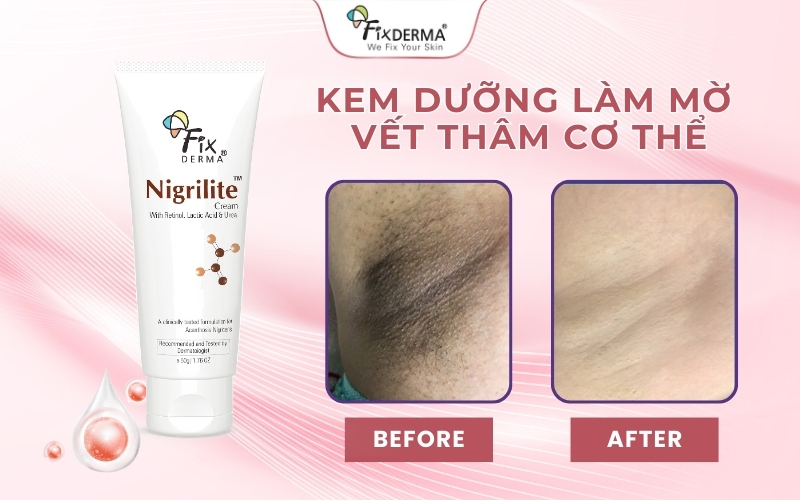 Nếu bạn đang phân vân bị gai đen bôi gì, hãy tham khảo ngay gợi ý từ Fixderma. Kem dưỡng Fixderma Nigrilite Cream là dòng kem chuyên biệt hỗ trợ cải thiện các vùng da thâm sạm trên cơ thể.