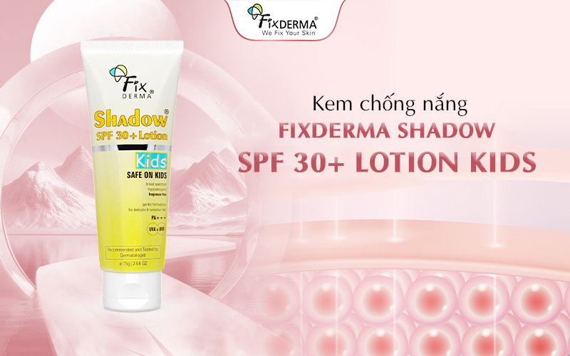 Fixderma Shadow SPF 30+ Lotion Kids được nghiên cứu dành riêng cho làn da trẻ em, giúp bảo vệ da trước tác hại của tia UVA và UVB trong các hoạt động ngoài trời.