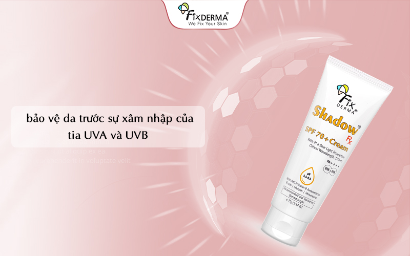 Fixderma Shadow SPF 70+ Cream là loại kem chống nắng lai kết hợp giữa màng lọc vật lý và hóa học, thiết kế để bảo vệ da toàn diện trước tia UV. Sản phẩm giúp cấp ẩm nhẹ nhàng, giúp dịu da và hạn chế gây nhờn rít.
