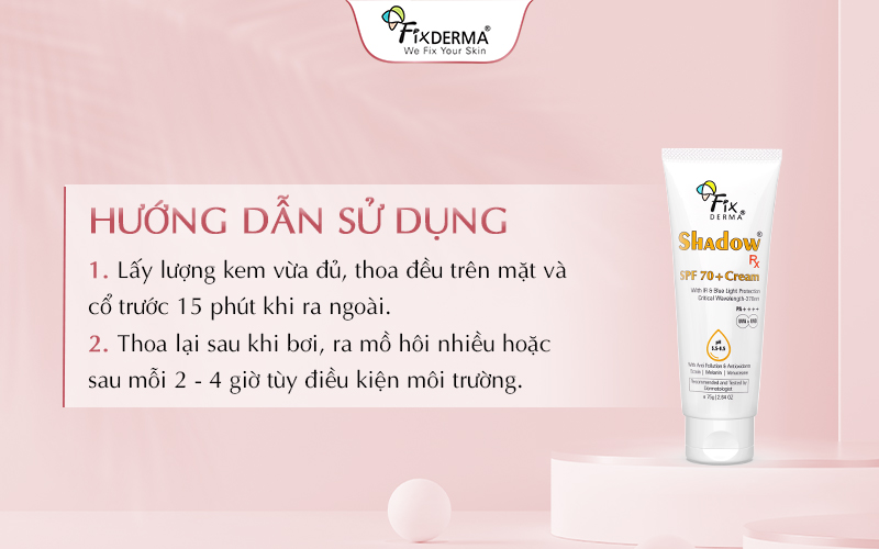 Hướng dẫn sử dụng gel chống nắng Fixderma Shadow SPF 70+ Cream