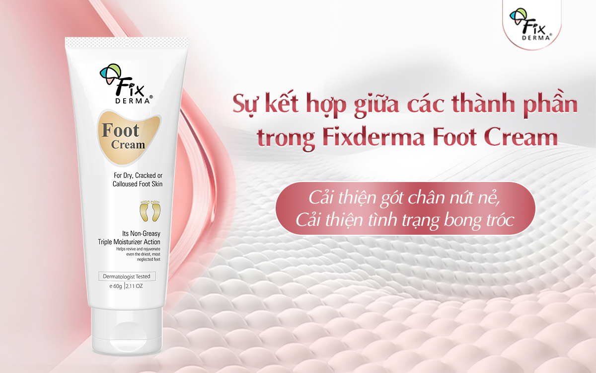 Có nhiều phương pháp cải thiện tình trạng nứt gót chân. Fixderma Foot Cream là giải pháp đơn giản và là lựa chọn phù hợp. Kem dưỡng chứa các thành phần dưỡng ẩm, làm sạch tế bào da chết và hỗ trợ phục hồi vùng da gót chân, từ đó giúp gót chân được mềm mại, giảm dày sừng.