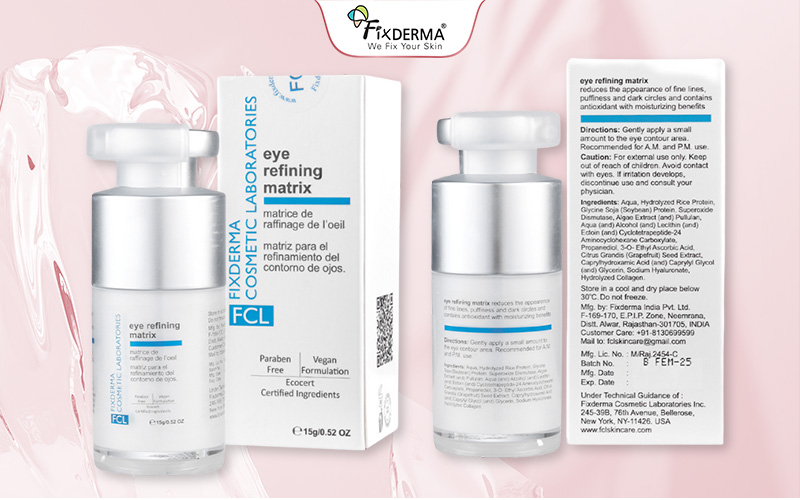 Sản phẩm Eye Refining Matrix là gel dưỡng chuyên biệt cho vùng da quanh mắt đến từ thương hiệu Fixderma Cosmetic Laboratories (FCL) – là một trong những thương hiệu của mỹ phẩm Fixderma.