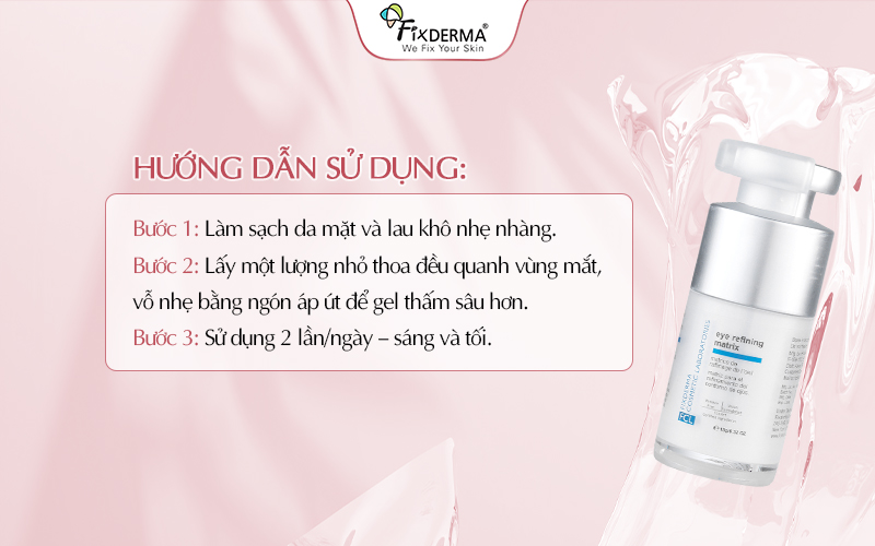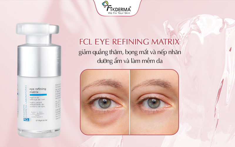 Eye Refining Matrix là gel dưỡng mắt cao cấp giúp dưỡng ẩm, làm sáng, giảm thâm quầng và nếp nhăn vùng mắt hiệu quả. Với công thức chứa Peptide, Vitamin C, HA và Collagen thủy phân, sản phẩm mang lại cảm giác dễ chịu, phù hợp cho mọi loại da. Hy vọng với bài viết trên mà Fixderma chia sẻ sẽ giúp ích được cho mọi người!