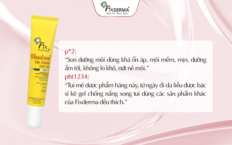 Son dưỡng môi Fixderma Shadow Lip Shield SPF 50 nhìn chung được nhiều người dùng sau khi sử dụng đánh giá tốt. Dưới đây là một số đánh giá từ người dùng.