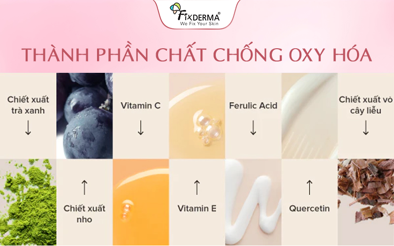 Được ví như thành phần “vàng” trong sản phẩm chăm sóc da, chất chống oxy hóa giúp bảo vệ làn da trước các tác động từ môi trường. Từ đó, giúp hạn chế tình trạng khô, bong tróc và xuất hiện các dấu hiệu lão hóa.