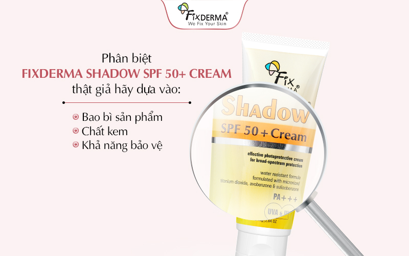 Cách phân biệt kem chống nắng Fixderma Shadow SPF 50+ Cream thật giả