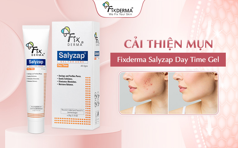 Fixderma Salyzap Day Time Gel là gel giảm mụn ban ngày với công thức tiên tiến, giúp làm dịu sưng đỏ, kiểm soát bã nhờn và cân bằng hệ vi sinh trên da. Nhờ Salicylic Acid (BHA), sản phẩm thâm nhập sâu vào lỗ chân lông, làm sạch tế bào chết, hạn chế mụn đầu đen, mụn đầu trắng.