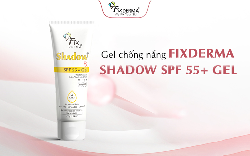 Gel chống nắng Fixderma Shadow SPF 55+ Gel giúp bảo vệ da quang phổ rộng trước tia UVA, UVB và tia hồng ngoại (IR) – những tác nhân gây lão hóa sớm. Sản phẩm hỗ trợ làm giảm các dấu hiệu lão hóa, đồng thời sở hữu kết cấu gel mỏng nhẹ, thoáng da, phù hợp cả với làn da dầu mụn.